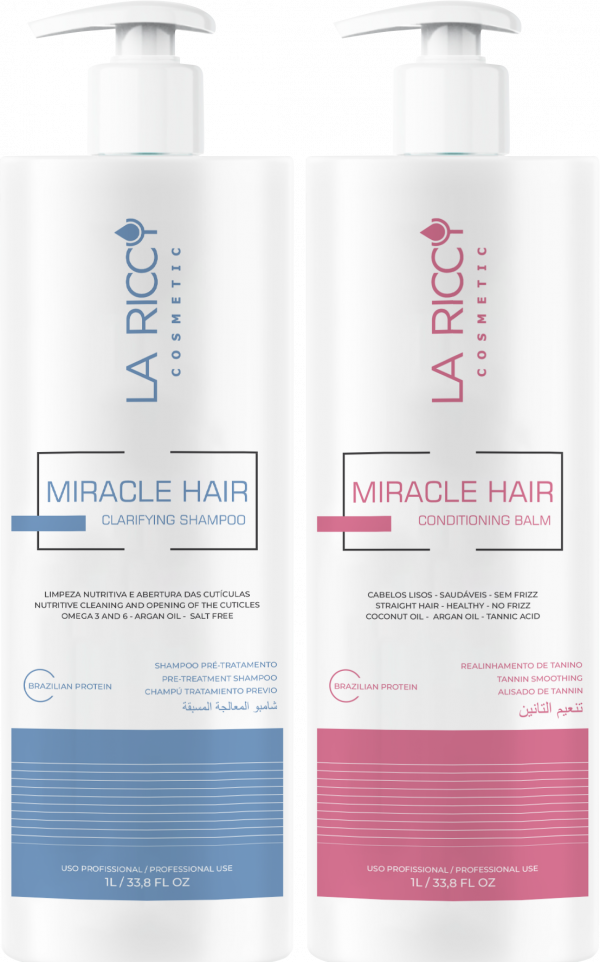 The pre-treatment shampoo (step 1) was developed to remove any chemical residue and protect the hair from the application of conditioning balm (step 2). Its formula provides nutrition and cleaning to the hair cuticle without damage, assisted by the nourishing properties of argan oil, omega 3 and other healing elements. The Brazilian miracle hair treatment (step 2) is an evolution in the concept of progressive, since it softens and nourishes the hair at the same time. Its formula is based on the synergy between tannic acid, keratin amino acids, panthenol, argan oil and coconut oil, which act by forming a protein network together with the intercellular cement of the cortex, providing hair that is hydrated, shiny and naturally smooth. It does not contain formaldehyde or any substance harmful to health.