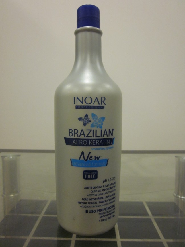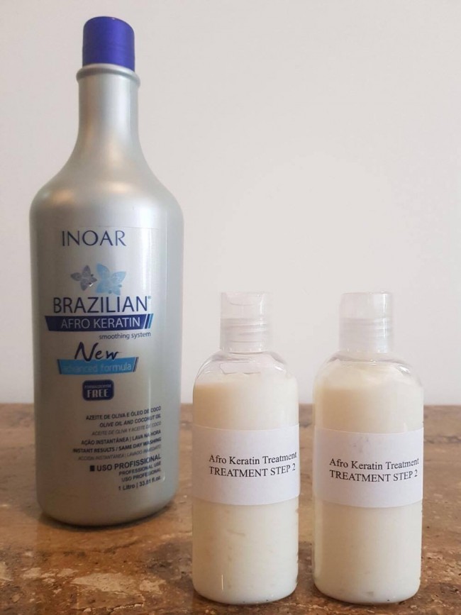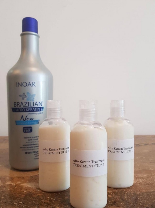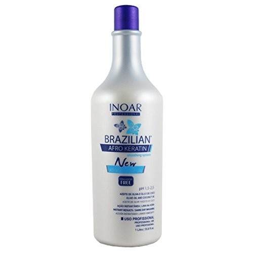 The most amazing novelty of Inoar for this season is the Brazilian Afro Keratin, a formaldehyde free volume reducer made specifically for Afro and Ethnic hair. Its exclusive and revolucionary formula contains Amino System, and actives made of organic acids conjugated with 11 amino acids, combined with olive and coconut oil, that provide a perfect and long lasting reduction for Afro hair. Brazilian Afro Keratin Inoar with the exclusive Amino system technology replica the structure of the hairs cell membrane, repairing damanged part and providing immediate and long lasting straight hair on ethnic hair, Its formula, rich in actives extracted from olive and coconut provides unparalleled shine and softness to the hair. STEP BY STEP: Wash hair 1 to 2 times with a clarifying shampoo of your preference, massaging for two minutes. Dry the hair completely. Apply the Brazilian Afro Keratin starting at the roots down to the ends. pause for 30 to 40 minutes. With the aid of a hair dryer dry the hair completely, and iron thin strands 7 to 10 times at 180°C with chemically treated hair and 210°C with virgin hair. rinse and dry.