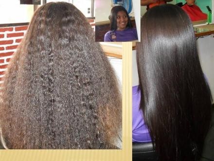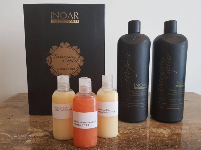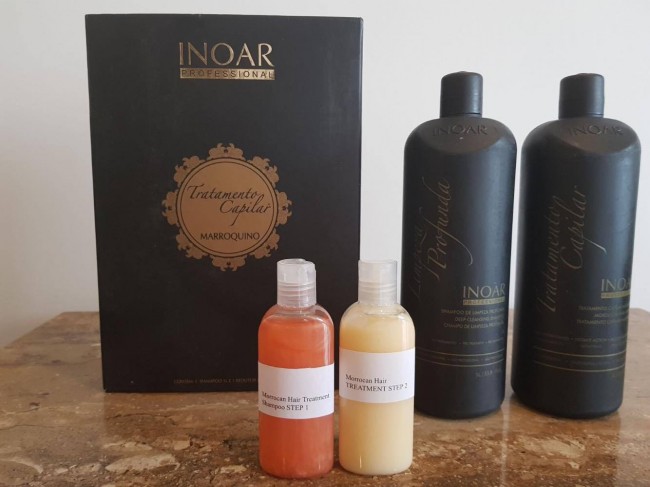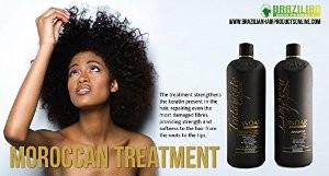 The exclusive The Moroccan Treatment rebuilding formula is composed of keratin, white clay, and cocoa oil designed to treat and straighten damaged or curly hair in an efficient and long-lasting manner. In addition to repairing damaged hair, the product reduces volume by 80 to 90 percent, on average. The product can be used on ‘virgin′ hair or may be used over other relaxing or common straightening treatments, leaving hair looking straight and hydrated. This treatment allows you to wash the hair or tie it down on the same day of treatment. Duration is about three months. The secret of a great treatment and straightening is on the professional application combined with the a great product. Formula Active Ingredients: Keratin, White Clay and Cocoa Oil. The Kit includes: 1 liter- (34 oz)Deep Cleansing Shampoo. 1 liter- (34 oz) Morrocan Treatment.